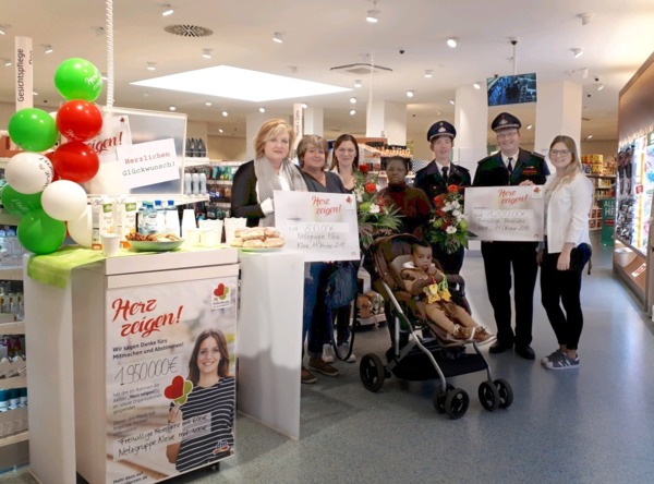 Bei der Aktion „Herz zeigen!“ vom 14. bis 22. September 2018 konnten die Kunden der dm-Märkte zwischen zwei lokalen Organisationen abstimmen. Neben der Feuerwehr war die Netzgruppe Kleve nominiert. Beim Einkauf konnten die Kunden Ihre Stimme in Form eines Herzchens in einen transparenten Behälter einwerfen. Gewinnerin war am Ende die Organisation, die mehr Herzchen bekommen hatte. Der Zweitplatzierte ging aber auch nicht leer aus: Das Preisgeld betrug für den ersten Platz jeweils 600 € und für den zweiten Platz 400 €. Da zwei Märkte sich für die Aktion zusammengetan hatten also insgesamt 1.200 € für die Feuerwehr Kleve und 800 € für die Netzgruppe.