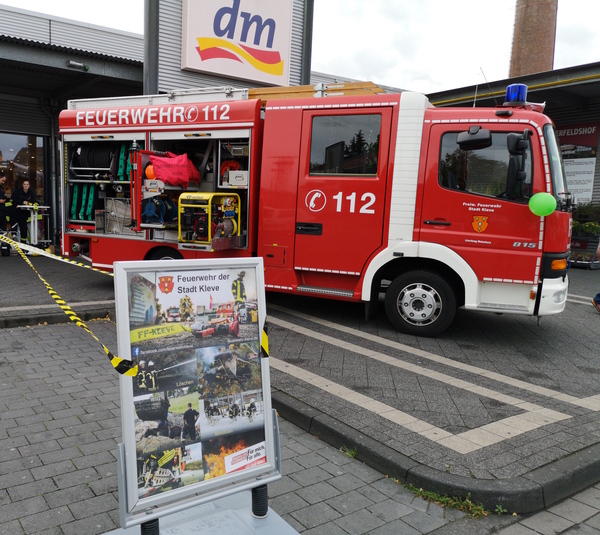 Die Feuerwehr Kleve hatte für die Aktion am Freitag, dem 21. September an beiden Filialen einen Stand aufgebaut und war von 10 - 17 Uhr jeweils mit einem Feuerwehrfahrzeug vor Ort. So kam man mit vielen Menschen ins Gespräch und konnte über die Arbeit der Feuerwehr informieren. Vielleicht ist es bei einigen Gesprächen auch gelungen, Interesse für die Mitgliedschaft bei der Feuerwehr zu wecken. Neue Helfer sind natürlich immer willkommen!