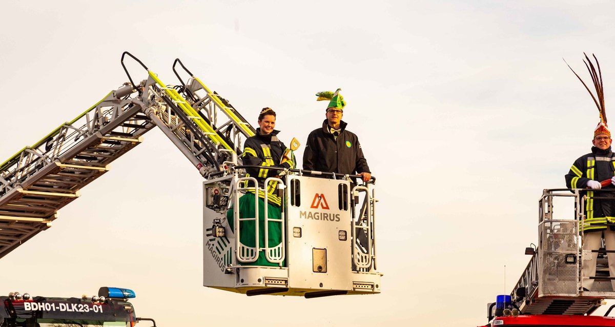 Neben der Begeisterung für den Karneval verbindet sie eine weitere Leidenschaft: Der Klever Karnevalsprinz Tobias der Stimmungsvolle, die Bedburg-Hauer Tulpenprinzessin Jil und Prinz Peter der Praktische aus Kranenburg sind alle Mitglied in der freiwilligen Feuerwehr.