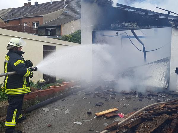 Die Löschzüge Nord-Ost (Griethausen, Schenkenschanz, Warbeyen) und Kellen, sowie die städtischen Mitarbeiter wurden wurden gegen 13:40 Uhr alarmiert. Schon auf der Anfahrt war die Rauchsäule über Griethausen deutlich sichtbar. Nachdem klar war, dass sich keine Menschen mehr im Gebäude befanden, konnten sich die drei eingesetzten Atemschutztrupps ganz auf die Brandbekämpfung konzentrieren. Der eigentliche Brandherd befand sich in einer Garage, welche bereits fast vollkommen ausgebrannt war. Betroffen war auch ein daneben befindlicher Anbau des Wohnhauses. Der Brand konnte schnell unter Kontrolle gebracht und die Ausbreitung auf die weiteren Gebäudeteile verhindert werden. Allerdings mussten zum Auffinden und Ablöschen letzter Glutnester einige Verkleidungen im Gebäude und in einem Anbau entfernt werden.