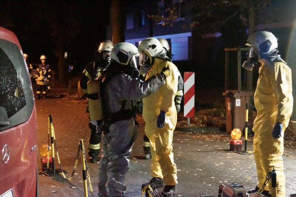 Zu einem ABC-Einsatz kam es für die Feuerwehr Kleve am Abend des 27. November 2019 gegen 21:30 Uhr. Bei der Entrümpelung ihres Kellers hatten die Bewohner eines Hauses an der Straße „In den Galleien“ eine verdächtige Kiste mit Mineralien gefunden. Die Feuerwehr untersuchte diese mit Messgeräten und konnte glücklicherweise feststellen, dass von diesem keine Gefahr ausging. Der Strahler wurde gesichert.