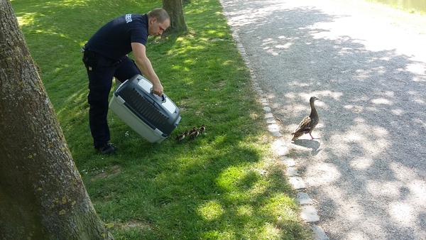 Die Vögel konnten alle aus dem Schacht gerettet werden. Nachdem offensichtlich alle wohlauf waren, wurden sie zum Kermisdahlufer gebracht, wo man sie erfolgreich aussetzen konnte: Die Jungen folgten der Mutter auf das Wasser.