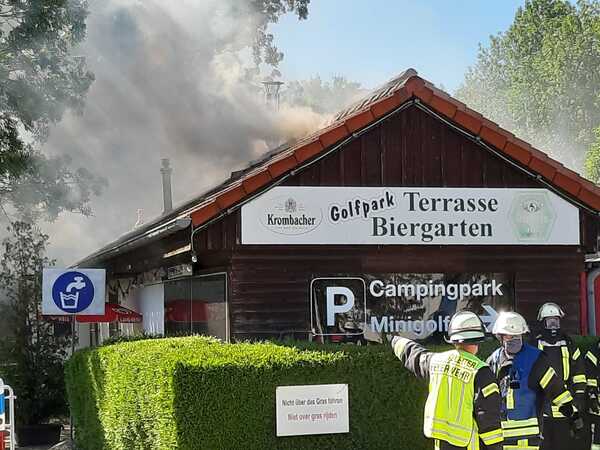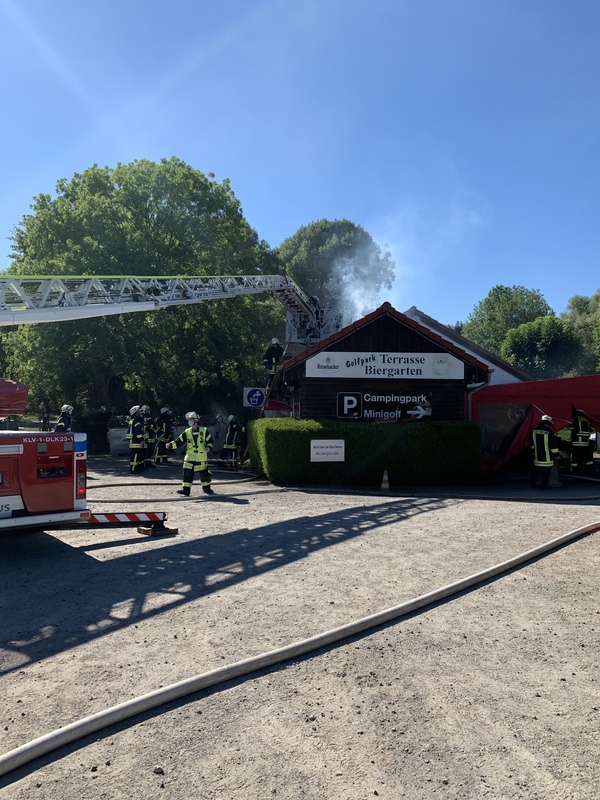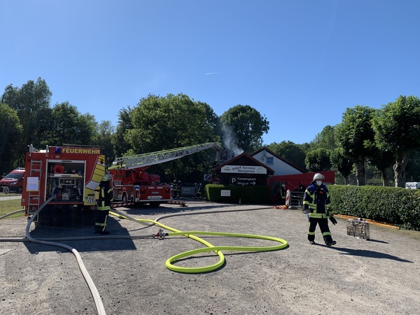 Zu einem Brand eines Gastronomie-Gebäudes auf einem Wohnmobilstellplatz in Rindern kam es gestern Nachmittag (31. Juli 2020). Die Feuerwehr Kleve wurde um 16:18 Uhr alarmiert. Zwei Personen mussten mit leichten Verletzungen ins Krankenhaus gebracht werden.