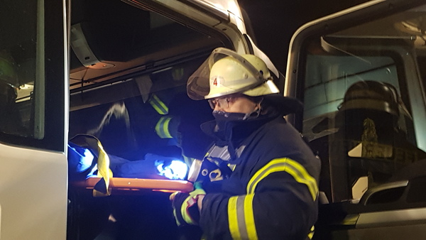 Löschzug Rindern übt patientenorientierte Rettung an LKW