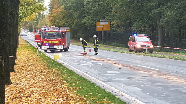 Im Anschluss mussten noch die ausgelaufenen Betriebsstoffe aufgenommen werden, so dass der Einsatz für die 35 Kräfte gegen ca. 14:30 Uhr beendet werden konnte. Der betroffene Teil der Nassauerallee war für diese Zeit gesperrt.