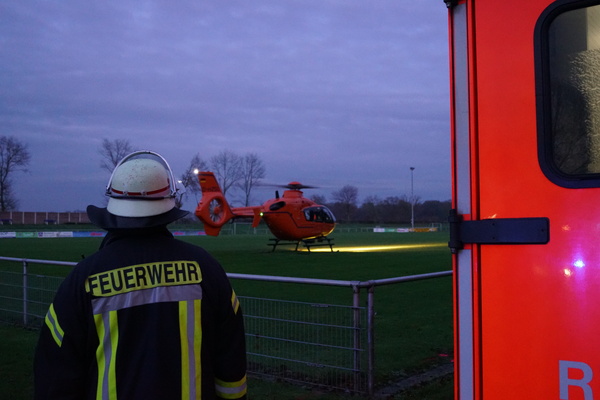 Am Mittwoch (16. Dezember 2020) gegen 16 Uhr wurde die Feuerwehr Kleve zu einem Einsatz des Rettungsdienstes hinzugezogen. Es galt, die Landung des in Duisburg stationierten Rettungshubschraubers „Christoph 9“ vorzubereiten, der im Ortsteil Donsbrüggen einen Patienten aufnehmen sollte. Hierzu musste auch ein Tor des Sportplatzes an der Straße Nössling geöffnet werden.