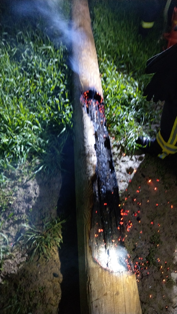 Nachtrag (18. März) Nachdem der Mast heute ein zweites Mal zu brennen anfing, wurde er durch die Feuerwehr gefällt.