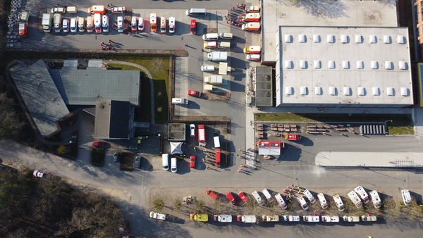 - 2021-03-31 09:50 Uhr Auch der Bereitstellungsraum hinter dem Berufskolleg ist einsatzbereit. Von hier aus wird u. A. der Transport der Personen koordiniert, die den Absperrbereich nicht eigenständig verlassen können. Die Sondierung des Fundortes verzögert sich leider gerade noch etwas.