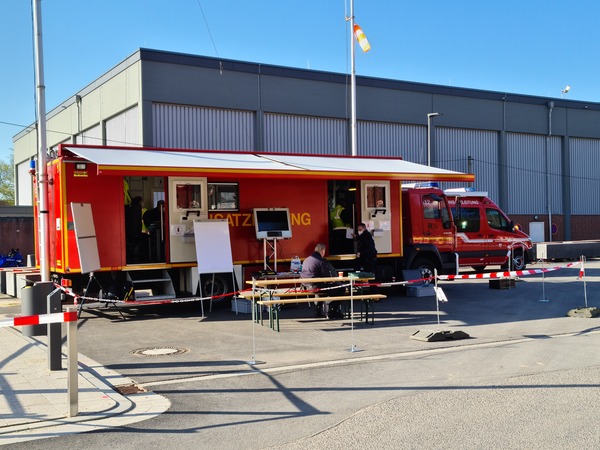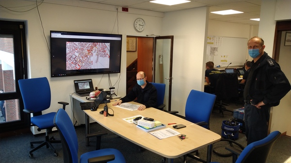 - 2021-03-31 08:00 Uhr Die Feuerwehreinsatzzentrale an der Brabanterstraße ist besetzt und einsatzbereit. Von hier aus werden alle Feuerwehrkräfte geführt.