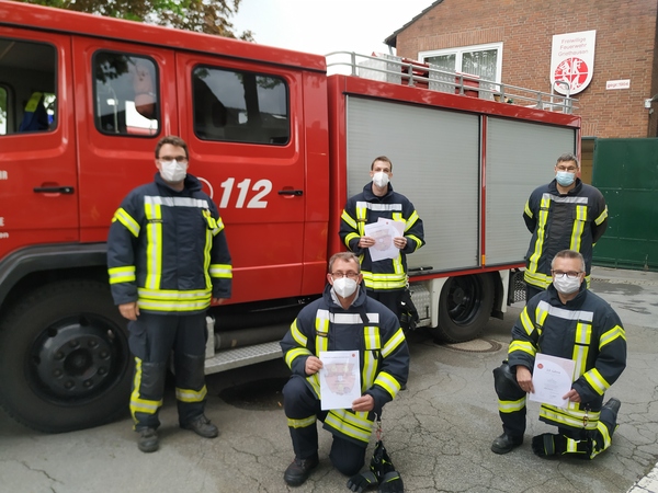 Befördert wurde Axel Giezenaar zum Brandmeister und Horst Knoop zum Oberfeuerwehrmann. Axel Giezenaar wurde auch für zehn Jahre Mitgliedschaft geehrt, zusammen mit Andreas Jaroniak.