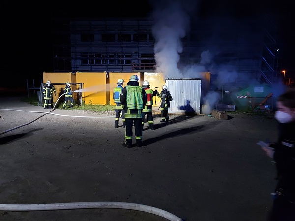 Am Donnerstag (10. Juni 2021) gegen 01:40 Uhr brannte aus ungeklärten Gründen ein Bau-Container auf einer Baustelle an der Van-den-Bergh-Straße.