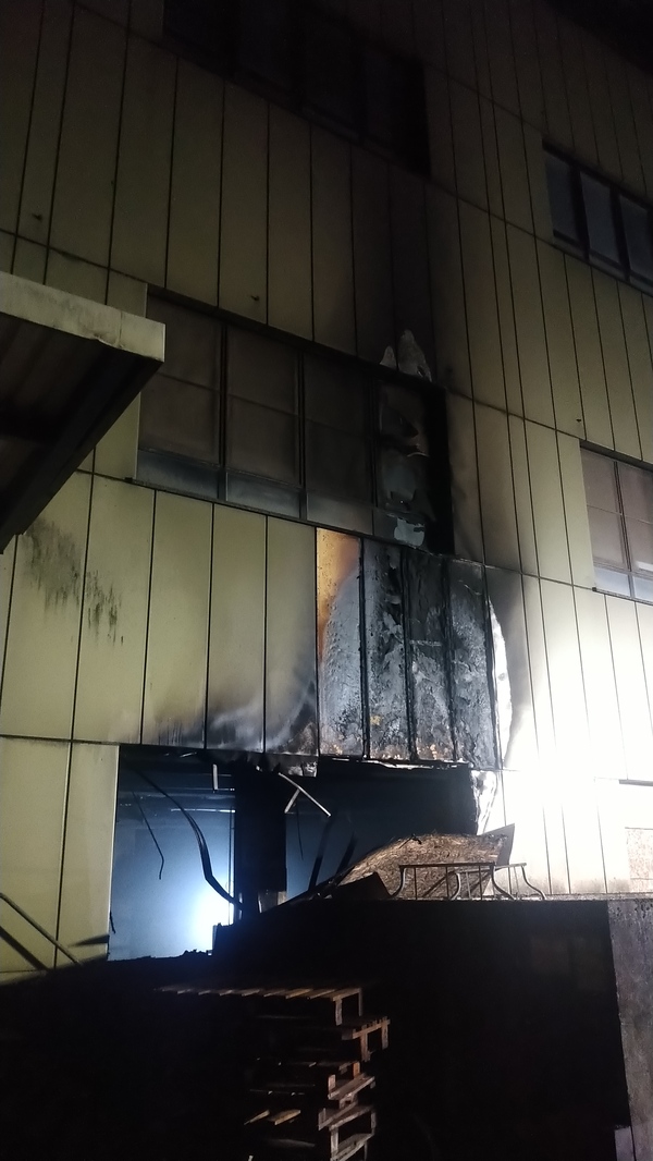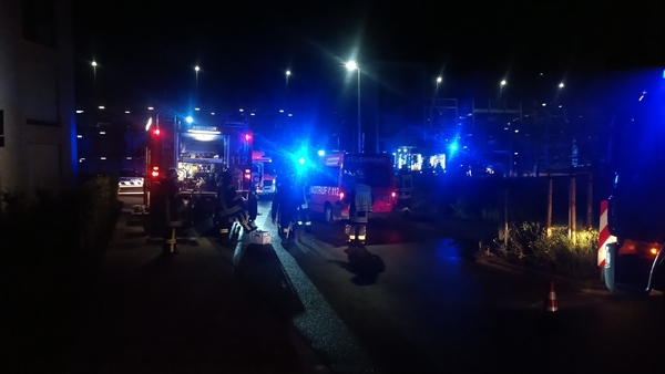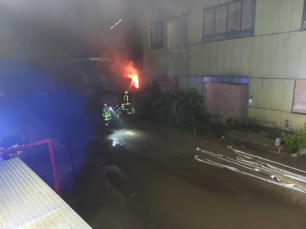 Auf der Rückseite des Fabrikgebäudes brannte es beim Eintreffen der Feuerwehr in einem Raum im Erdgeschoss. Die Flammen schlugen aus einem Fenster die Fassade hoch. Brandrauch hatte sich in großen Teilen des Gebäudes verteilt und drang bereits aus Fenstern an einer anderen Gebäudeseite ins Freie. Fünf Trupps unter Atemschutz gingen zur Brandbekämpfung von innen und außen vor und konnten den Brand schließlich löschen.