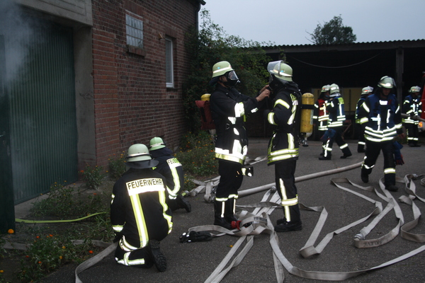 Vier vermisste Personen beim Brand in der ehemaligen Betriebswohnung eines Hofes auf Salmorth. So lauteten die Einsatzstichworte für eine Übung des Löschzuges Nord-Ost der Feuerwehr Kleve. Dieser besteht aus den Löschgruppen Griethausen, Schenkenschanz und Warbeyen, die auch im Einsatzfall oft zusammen alarmiert werden und deshalb auch regelmäßig gemeinsam üben.