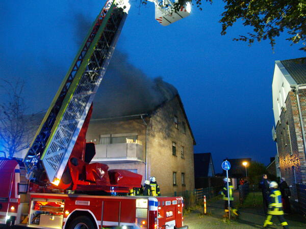 Um kurz vor sieben Uhr wurden am Samstagabend (2. Oktober 2021) die Löschzüge Kellen und Nord-Ost (Griethausen, Schenkenschanz, Warbeyen) zum Brand eines Mehrfamilienhauses an der Straße Steenpad in Kellen alarmiert. Das Einsatzstichwort lautete zunächst „Kellerbrand“, da Rauch aus dem unteren Teil des Gebäudes zu dringen schien. Letztendlich brannte die Dämmung unter einer Giebelwand. Das Gebäude wurde evakuiert und der Brand mittels zweier Drehleitern gelöscht.