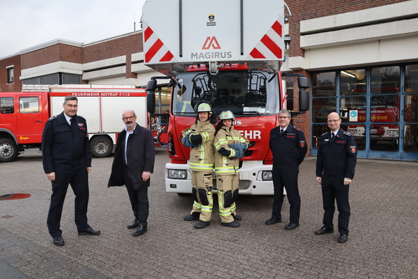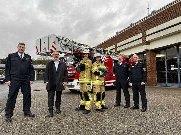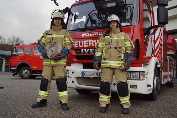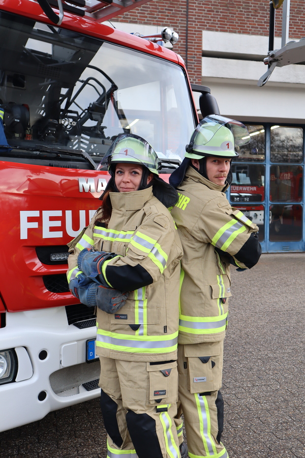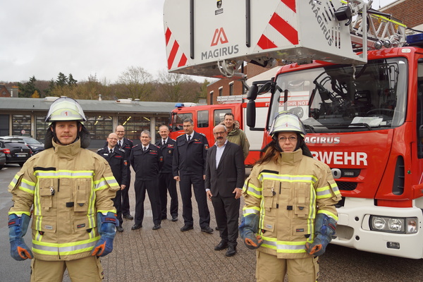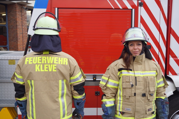 Gold statt Dunkelblau - So kommt die gesamte Feuerwehr Kleve bald zum Einsatz. Die neue Schutzausrüstung wurde am Mittwoch (1. Dezember 2021) der Öffentlichkeit vorgestellt. Bürgermeister Gebing und die Leitung der Feuerwehr zeigten den Vertretern der örtlichen Presse die Vorzüge der frisch gelieferten Jacken und Hosen. Die Jacken und Hosen werden in Kürze ausgegeben.