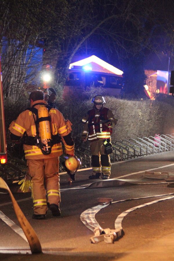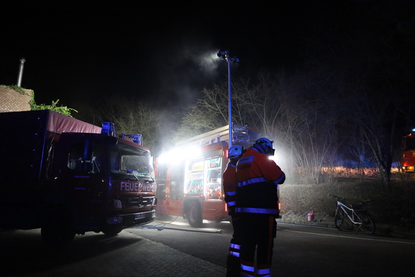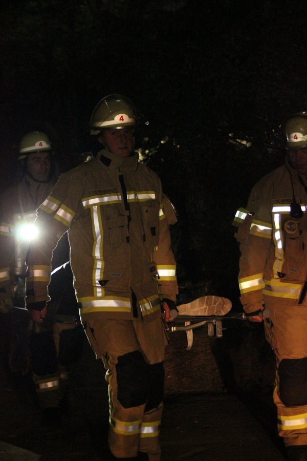 Eine weitere Herausforderung, die es durch die Einsatzkräfte beider Feuerwehren zu meistern galt, war die Rettung einer bewusstlosen Person, die möglichst schonend von einem Dach gerettet werden musste. Auch diese Aufgabe wurde von Kräften beider Wehren erfolgreich absolviert. Gegen ca. 21:00 Uhr konnte durch Einsatzleiter Jan-Peter Fruhen dann das Übungsende verkündet werden. Abschließend waren sich alle Beteiligten einig, dass die Übung sehr gut abgearbeitet wurde und alle Seiten voneinander lernen konnten.