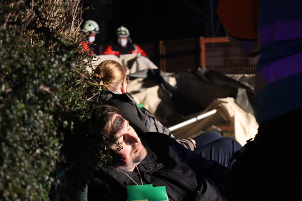 Nachdem das anfängliche Chaos sich lichtete und die einzelnen Aufgabenbereiche durch die Einsatzleitung klar definiert wurden, begannen im Anschluss an den verschiedenen Stellen des Übungsobjektes die Rettungsmaßnahmen durch die eingesetzten Kräfte der Feuerwehr. Parallel errichteten die Kräfte des Malteser Hilfsdienstes eine Verletztensammelstelle und sichteten die von den Einsatzkräften geretteten Personen. Anschließend wurden die Personen nach deren Verletzungsmustern durch die Kräfte der Malteser in Kategorien eingeteilt, um eine entsprechend priorisierte Versorgung durchzuführen.