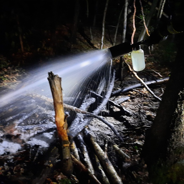 Der Einsatz in Reichswalde war gerade abgearbeitet, da wurde gegen 23:47 Uhr der Löschzug West (Rindern / Donsbrüggen) mit dem Stichwort „Waldbrand“ in den Ortsteil Donsbrüggen alarmiert. Beim Eintreffen wurde festgestellt, dass ein im Wald aufgeschichteter Haufen Gehölz brannte. Umgehend wurde eine Brandbekämpfung per Hohlstrahlrohr eingeleitet. Durch das schnelle Eingreifen der Einsatzkräfte konnte das Feuer so zügig unter Kontrolle gebracht und ein größerer Waldbrand verhindert werden.