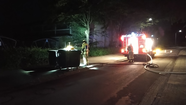 Im späteren Verlauf des Abends wurde die Löschgruppe Reichswalde noch zu einem Mülltonnenbrand alarmiert. Es brannte ein Müllcontainer mit Papierabfällen am Fahrradstellplatz der Grundschule. Der Brand konnte schnell gelöscht werden, nicht zuletzt aufgrund des rechtzeitigen Anrufes durch einen Passanten. Zur Ermittlung der Brandursache wurde die Polizei hinzugerufen.