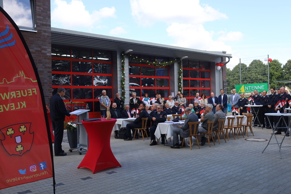 Es ist ein modernes Haus entstanden, dass nicht nur aus feuerwehrtechnischer, sondern auch aus energetischer Sicht auf dem neuesten Stand ist: Eine Luft-Wärmepumpe versorgt das Haus mit Wärme, versorgt von einer Photovoltaik-Anlage auf dem Dach. Das komplette Gebäude ist mit LED-Leuchtmitteln ausgestattet. Mit Blick auf den Umweltschutz wird außerdem noch eine Wildblumenwiese am Gebäude errichtet. Mit drei Stellplätzen für die zwei Fahrzeuge und das Boot ist nun genug Platz in der Fahrzeughalle, so dass die Fahrzeuge nicht mehr hintereinander stehen müssen. „Der Einsatz zum Schutz der Klever Bürger verbessert sich erheblich.“, sagte Ralf Benkel, der Leiter der Feuerwehr Kleve, und nannte als Beispiel den Einsatz an der Rheinbrücke am Vortag: „Früher musste man erst ein Fahrzeug herausfahren, um dann mit dem Richtigen unterwegs zu sein. Heute passiert das ohne Zeitverzug.“