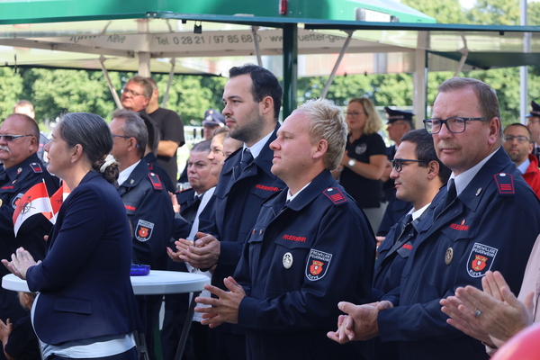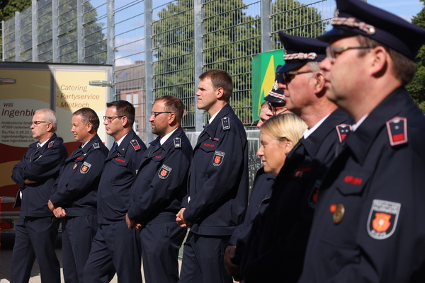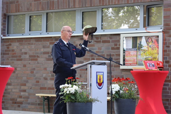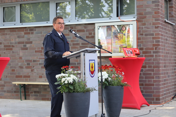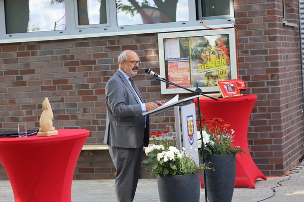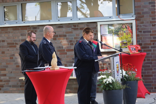Ein zeitgemäßes Haus sei aber auch wichtig, um alle Kameradinnen und Kameraden zu motivieren. Weil ein gutes Arbeiten, Lernen und Üben nun mit guten Rahmenbedingungen möglich ist. Es animiert auch – so haben in der Bauzeit auch schon weitere junge Frauen und Männer den Weg zur neuen Wache gefunden. Ralf Benkel erlaubte sich auch einen Blick in die Zukunft: „Mit dem neuen Feuerwehrhaus sind auch die Voraussetzungen gegeben, den Fuhrpark zu erneuern.“