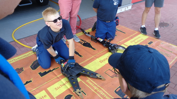Um 8 Uhr morgens startete die Gruppe aus Kleve von der Feuerwache in Kleve Richtung Straelen/Auwel-Holt. Für den Nachwuchs der Feuerwehr ging es um Spiel, Spaß und gute Laune. So musste beispielsweise ein riesengroßer Jengaturm gebaut werden und es musste eine Strecke über Getränkekisten zurückgelegt werden, ohne dass die Füße den Boden berührten. Knoten und Stiche standen ebenfalls auf dem Programm. Auch für die Verpflegung war bestens gesorgt: Es gab Köstlichkeiten aus dem Pommeswagen. Platz zum Spielen und Toben war auf dem Schulhof reichlich vorhanden.