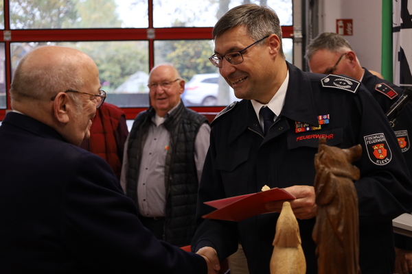 Am 27. Oktober 2022 fand nach zwei Jahren Pause wieder das Treffen der Ehrenabteilungen statt - diesmal im neuen Feuerwehrhaus in Griethausen. Verdiente Kameraden wurden für das langjährige Engagement bei der Feuerwehr geehrt. Der Leiter der Feuerwehr, Ralf Benkel, konnte sogar zwei Ehrungen für die 70-jährige Mitgliedschaft aussprechen.