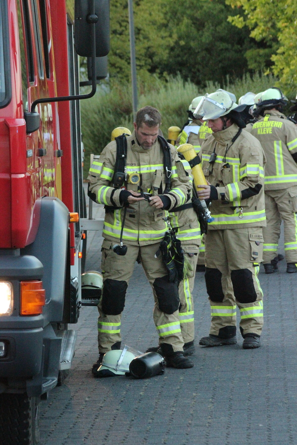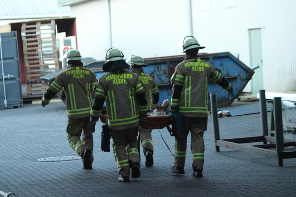 Zu einer geplanten Übung auf dem Werksgelände der Firma Winkels Interior Design Exibithion GmbH wurden bereits Anfang September die Löschzüge Kellen und West (Rindern / Donsbrüggen) alarmiert. Die Brandmeldeanlage in einer Werkhalle sollte ausgelöst haben und mehrere Personen sollten sich noch im Gebäude befinden.
