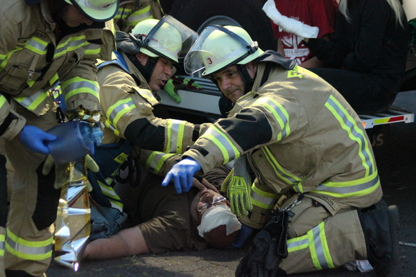 Beim Eintreffen der ersten Kräfte aus Kellen fand Einsatzleiter Marc Böhmer eine anspruchsvolle Lage vor. In einer Produktionshalle war es zu einer Verpuffung gekommen. Im Rahmen der ersten Erkundung fand er viele Verletzte und ein in der Produktionshalle ausgebrochenes Feuer vor, welches den Einsatzkräften einiges abverlangte. Aufgrund des Lagebildes forderte Böhmer umgehend den Löschzug West nach, welcher bei der Brandbekämpfung und bei der Betreuung der Vielzahl von Patienten unterstützte. Die Einsatzstelle wurde in mehrere Abschnitte gegliedert: So wurde parallel durch Einheiten der Feuerwehr die Menschenrettung innerhalb der Halle eingeleitet und eine Wasserversorgung von den auf dem Betriebsgelände befindlichen Löschbrunnen aufgebaut. Zudem kümmerten sich im zweiten Einsatzabschnitt Kräfte um die Einrichtung einer Patientensammelstelle und um die Erstversorgung der insgesamt zehn verletzten Personen. Nach 90 herausfordernden Minuten war die Übung dann beendet.