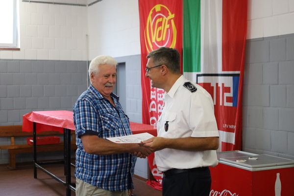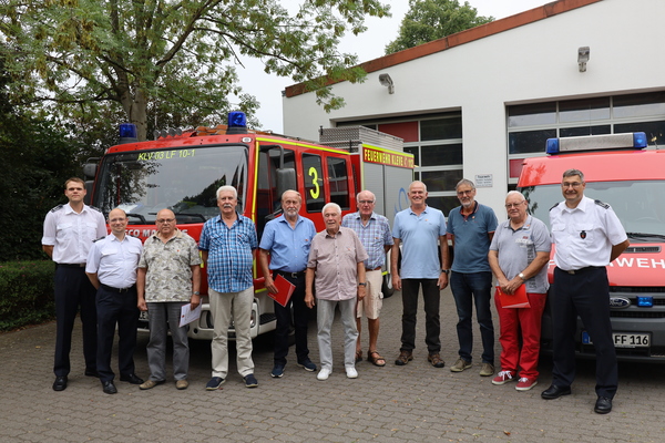 Am 24. August 2023 fand das Treffen der Ehrenabteilungen im Feuerwehrhaus in Reichswalde statt. Verdiente Kameraden wurden für 40, 50 und 60 Jahre Mitgliedschaft bei der Feuerwehr Kleve geehrt. Bei Kaffee und Kuchen und später Grünkohl konnten die Ehrenkameraden einen schönen Nachmittag verbringen.