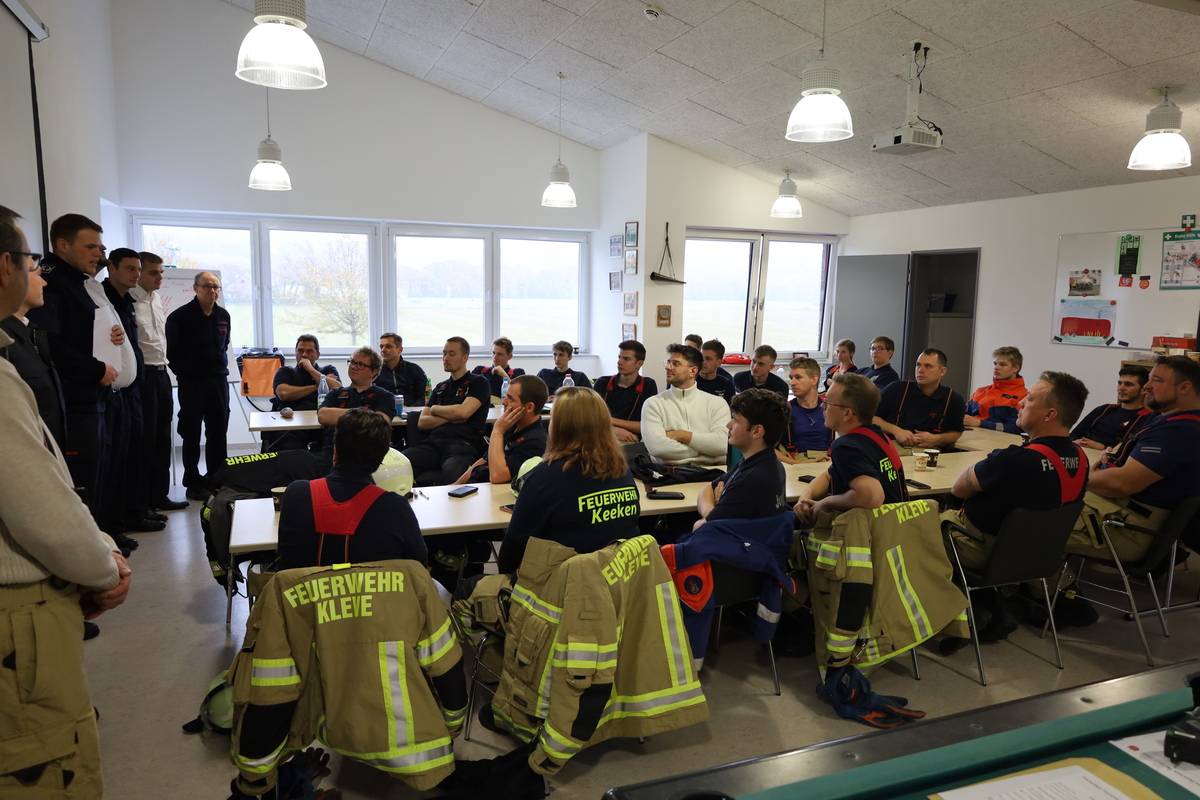 Am vergangenen Samstag (18. November 2023) bestanden 26 Feuerwehrleute aus Kranenburg und Kleve die theoretische und praktische Prüfung des Modul-1-Lehrganges. Der 80 Stunden umfassende Lehrgang hatte am 9. Oktober begonnen und fand wieder komplett in Präsenz statt. Zwei Teilnehmer bestanden sogar mit der Note „sehr gut“. Wegen Sarnierungsarbeiten in der Klever Feuerwache fanden einige Termine in Rindern statt - so auch die Prüfung.