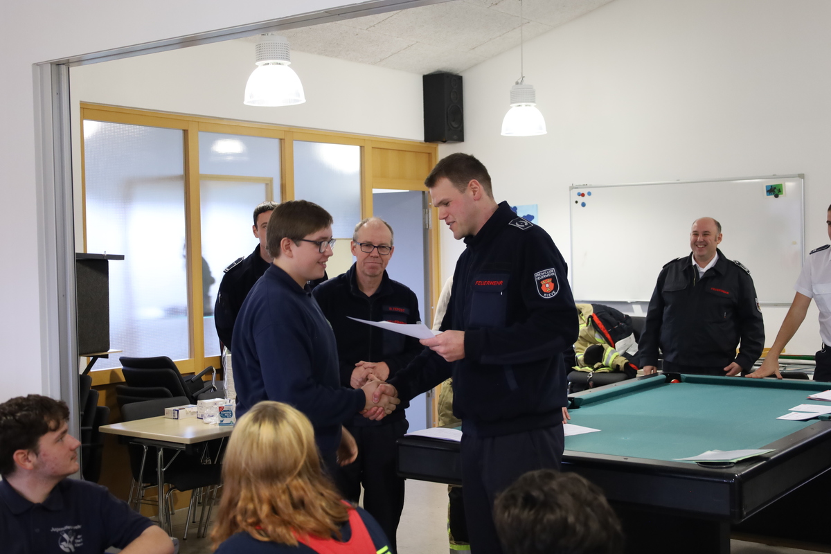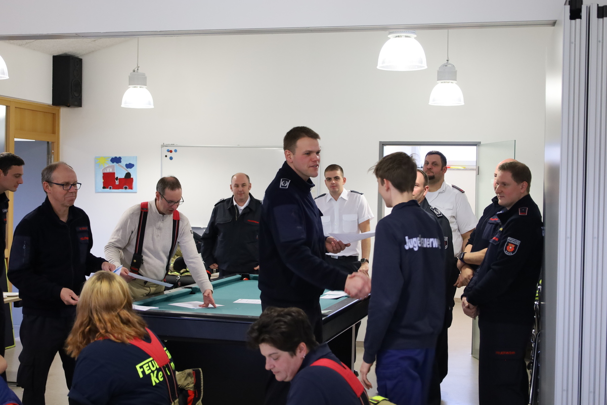 Zur Überbrückung der Zeit während der Auswertung der Prüfungen wurden die Teilnehmer gefragt, was sie motiviert hat, zur Feuerwehr zu kommen: Neben den häufigen Gründen, wie eine „Vorbelastung“ durch Freunde und Familie, waren die Gründe für den Beitritt vielfältig: Manche machten ein Helfersyndrom verantwortlich, andere zogen die Einbindung in die Dorfgemeinschaft oder die Nähe zum Feuerwehrhaus als Grund heran. In einem Fall war es auch ein Nachbarjunge, der ein Versprechen abgerungen hatte, zur Feuerwehr zu gehen.