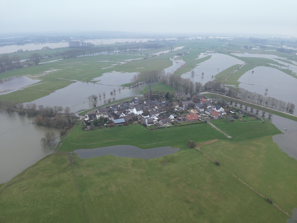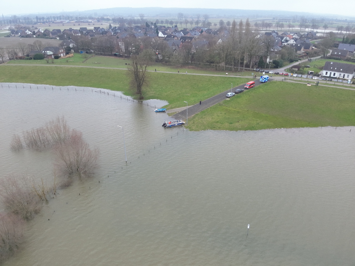Der seit gestern (7. Januar 2023) sinkende Rheinpegel bringt eine Entspannung der Hochwasserlage am Rhein und in der Klever Niederung, die der Feuerwehr Kleve über die Feiertage elf Einsätze durch Wasserschäden beschert hat. Die Maßnahmen des Hochwasserschutzkonzeptes der Stadt Kleve werden heute ab 17 Uhr wieder zurückgenommen. Am Wochenende hat die Erkundergruppe der Feuerwehr Luftbilder der Lage in Schenkenschanz gemacht, die wir nicht für uns behalten wollen.