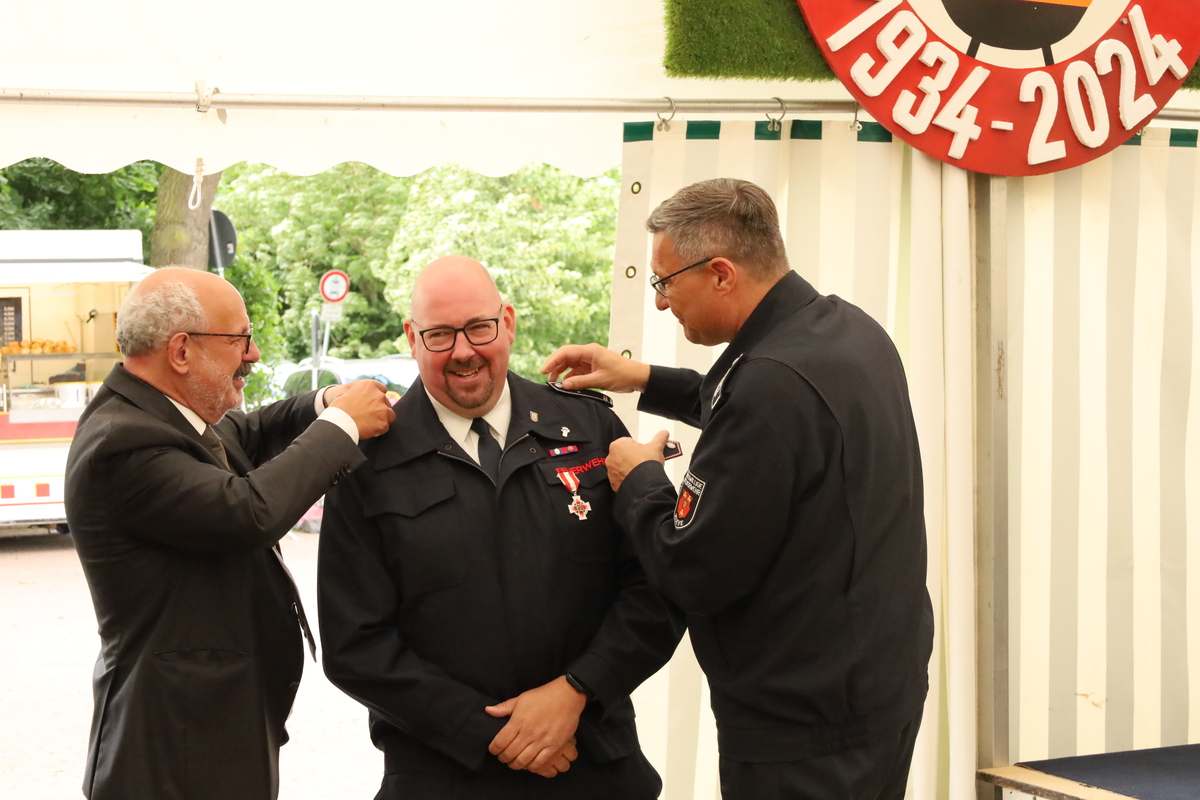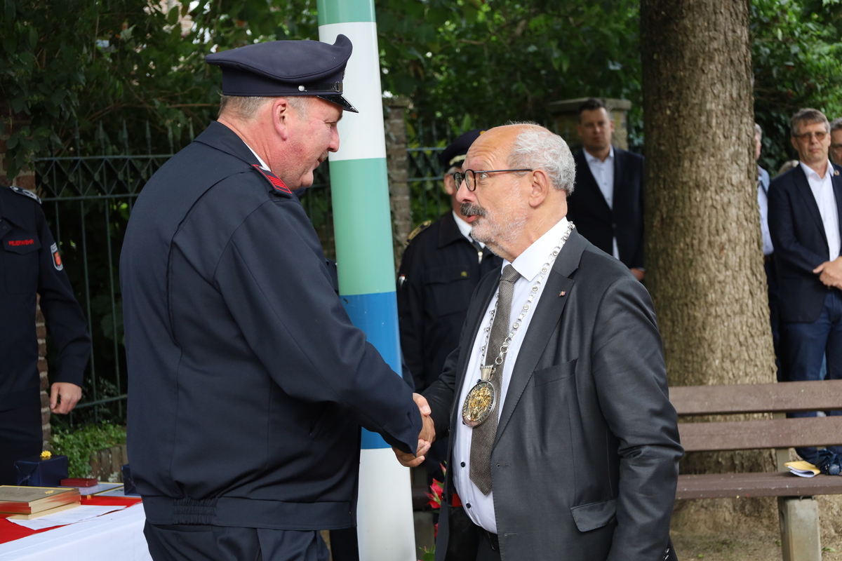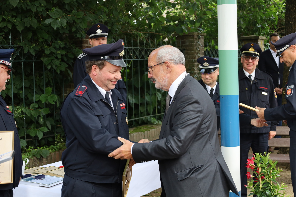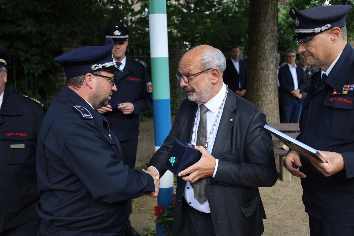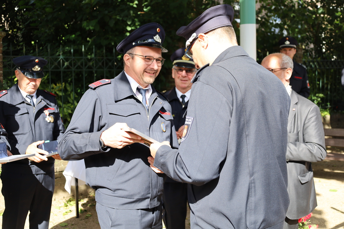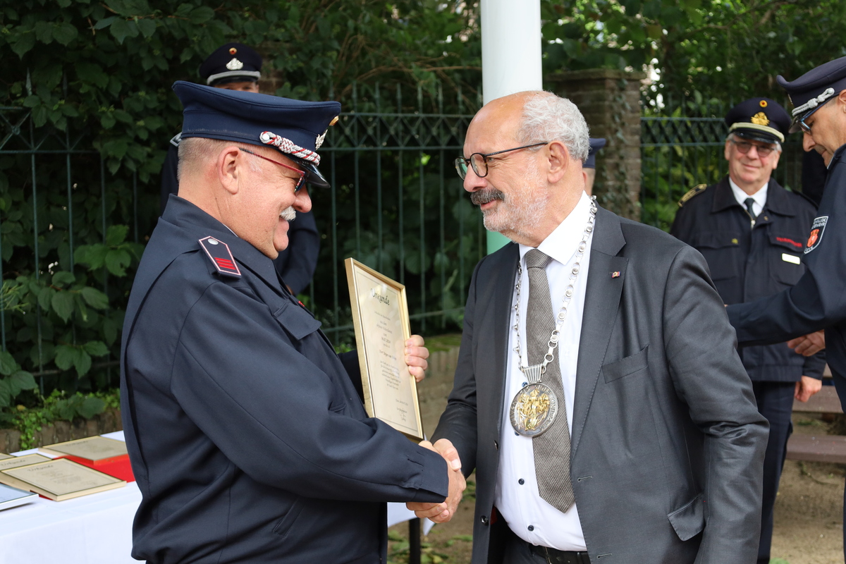 Beim Stadtfeuerwehrfest ist es üblich, verdiente Mitglieder für ihr langjähriges Engagement im den Dienst bei der Feuerwehr zu ehren.