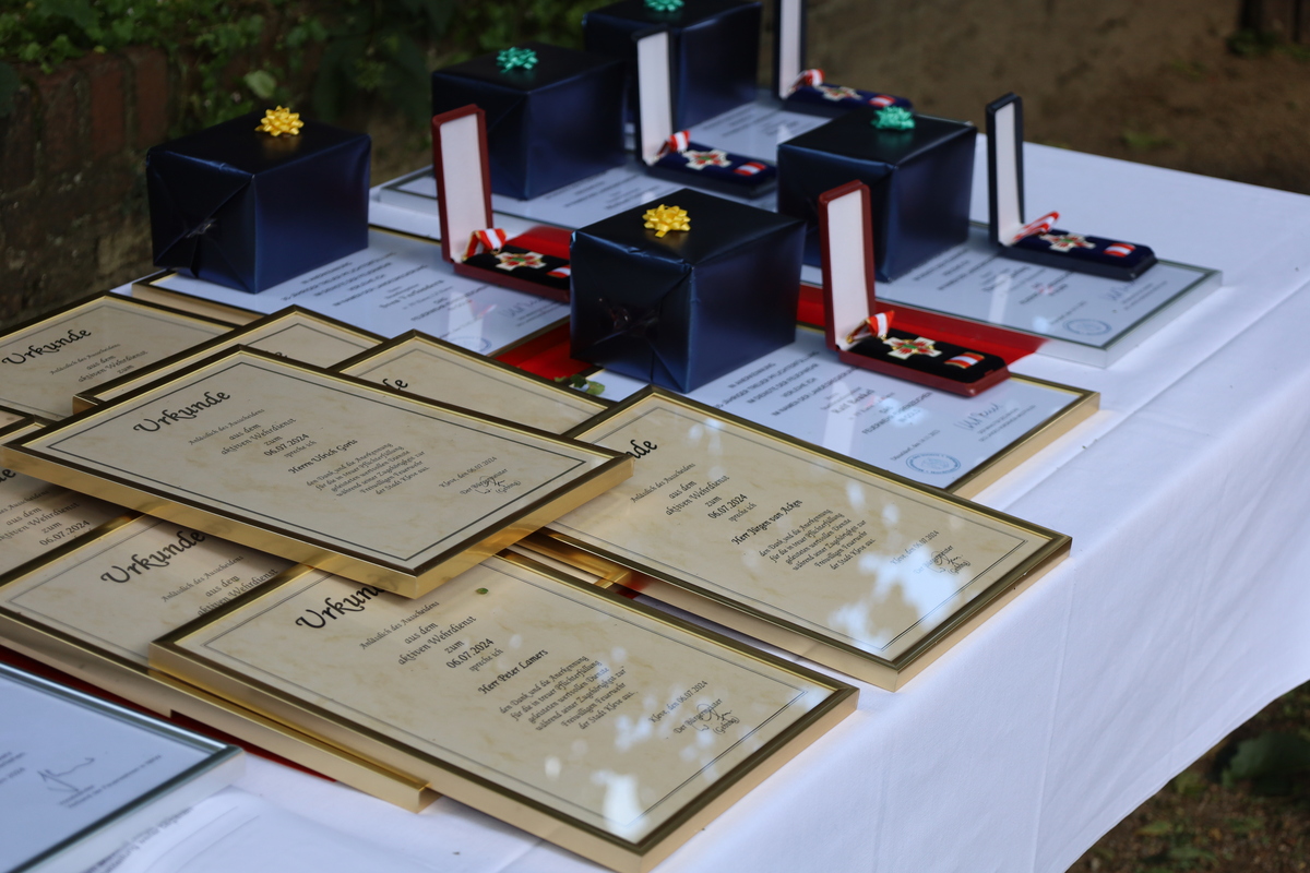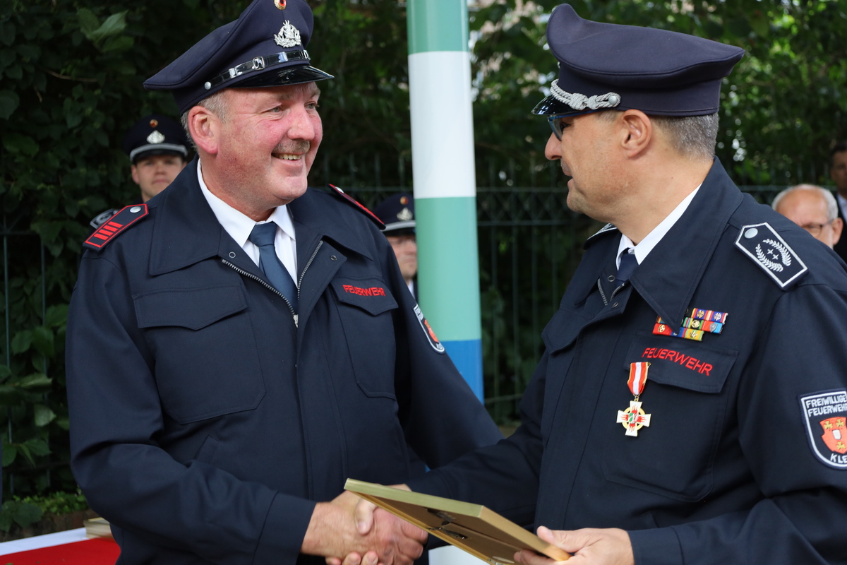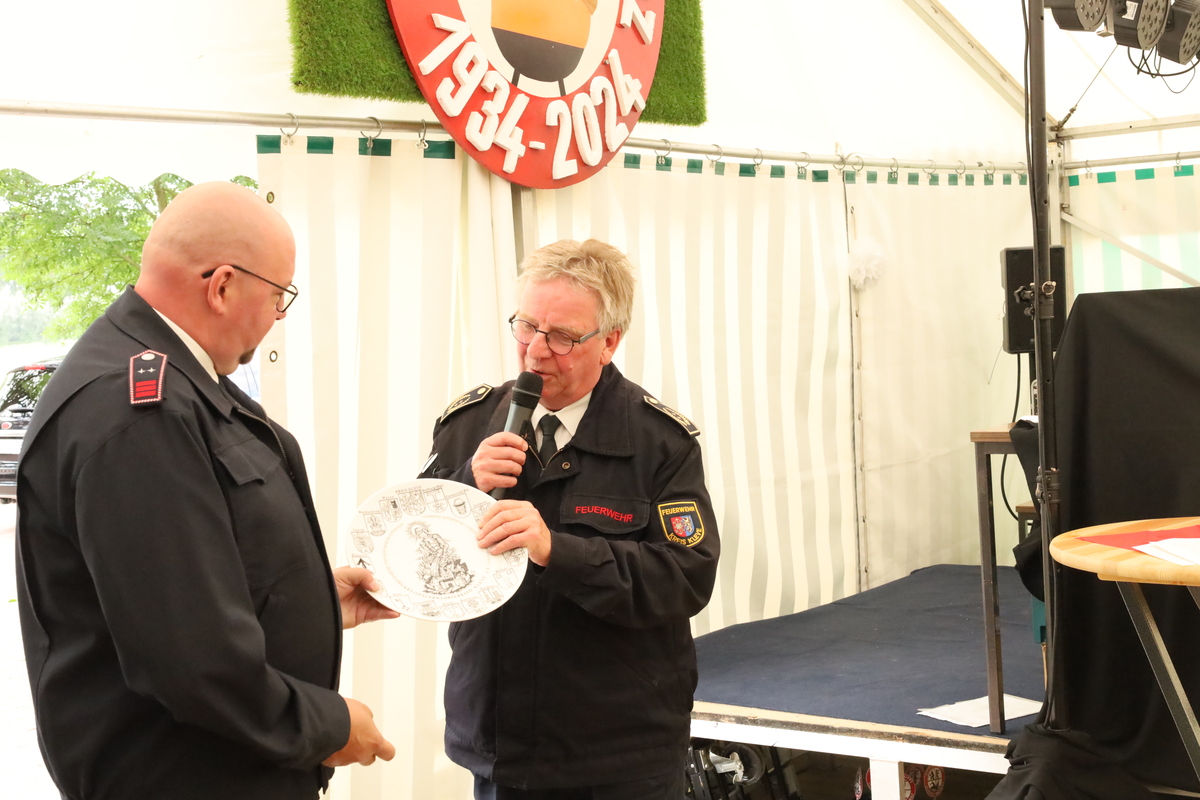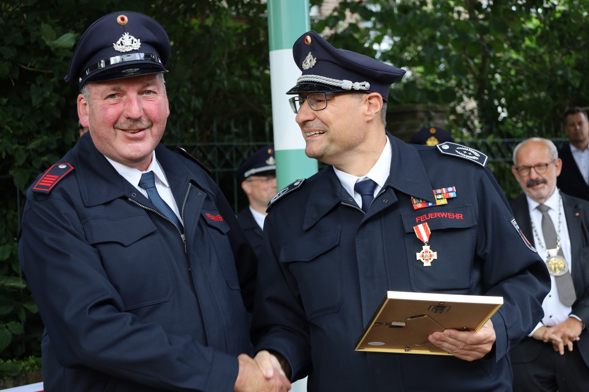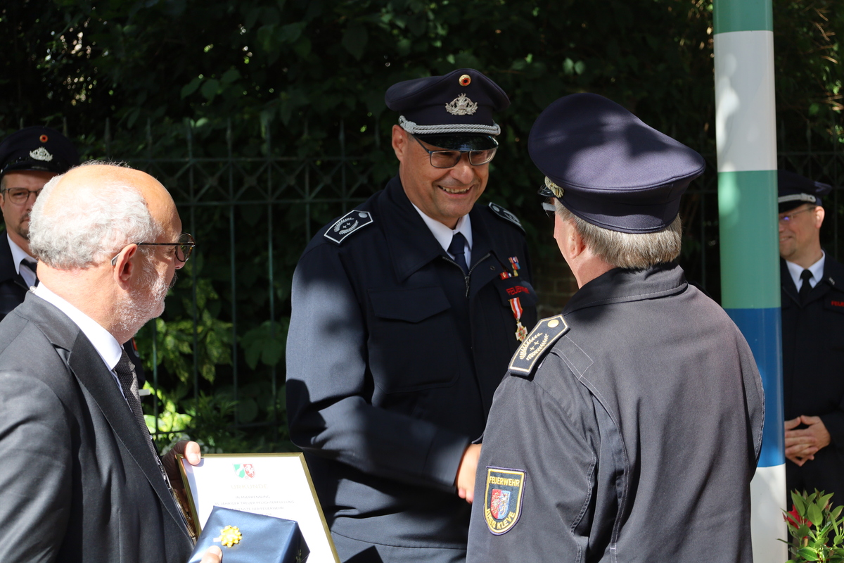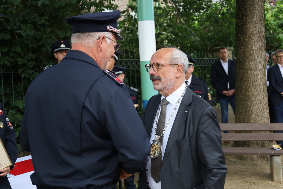 Beim Stadtfeuerwehrfest ist es üblich, verdiente Mitglieder für ihr langjähriges Engagement im den Dienst bei der Feuerwehr zu ehren.