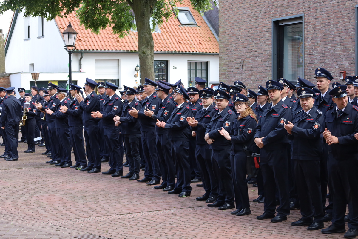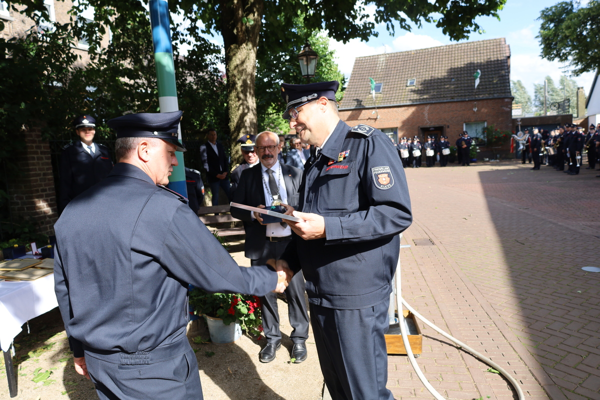 Dank gilt der Löschgruppe Schenkenschanz für die gute Organisation der Veranstaltung, dem Spielmannszug und dem Musikzug für die eindrucksvolle Begleitung des Festumzuges und den Gemeinden Kranenburg und Bedburg-Hau, die für die Zeit der Veranstaltung den Grundschutz in Kleve sicherstellten und auch zwei Einsätze übernahmen. Eine Staffel der Feuerwehr Kleve stand während der Veranstaltung einsatzbereit in Schenkenschanz, um die Kameradinnen und Kameraden aus Bedburg-Hau und Kranenburg im Erstfall einweisen zu können. Diese brauchte aber nicht tätig zu werden.