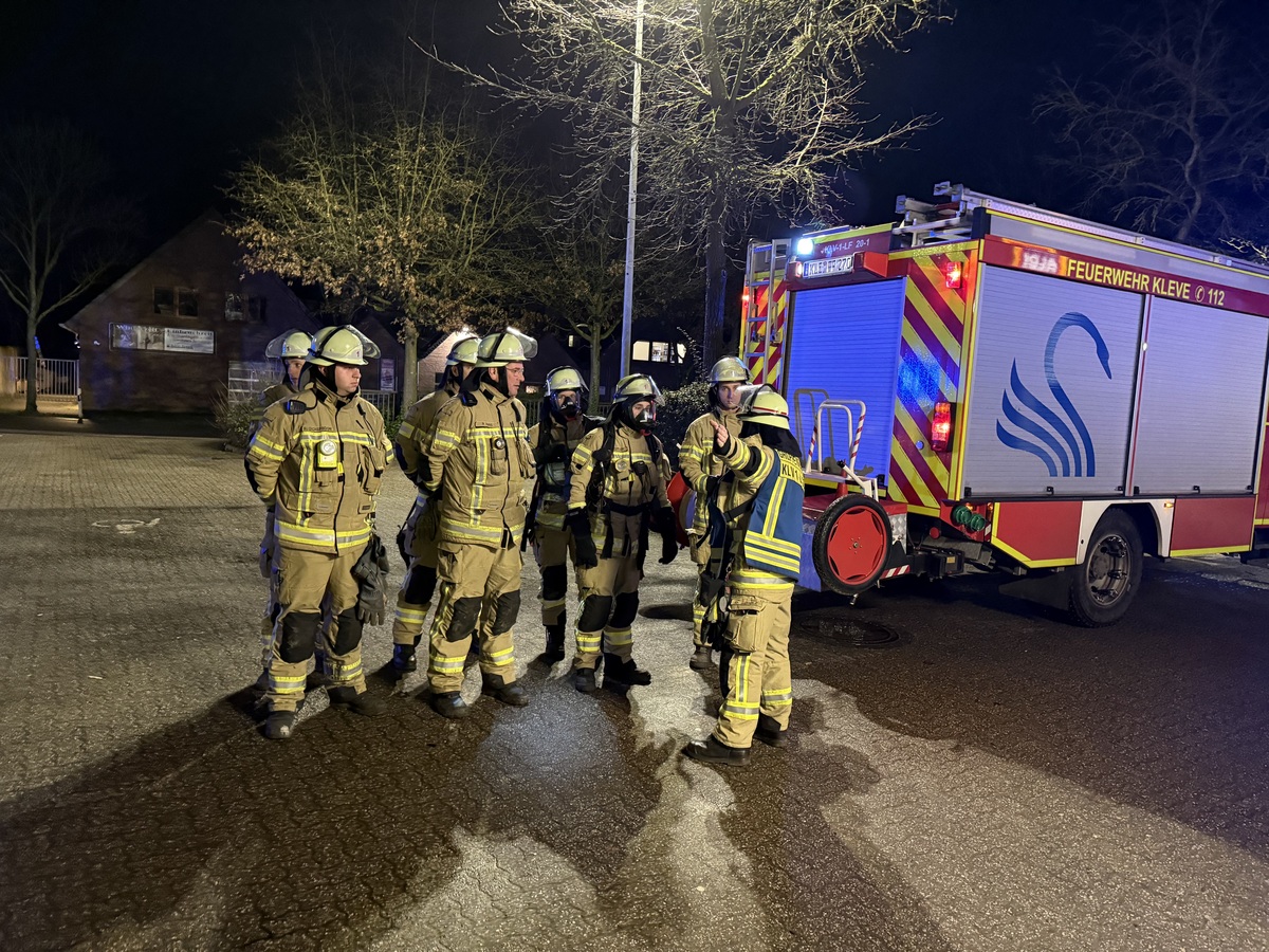 Die unangekündigte Alarmübung erwischte viele der ehrenamtlichen Feuerwehrleute beim Abendessen. Um kurz vor sechs Uhr piepsten die Meldeempfänger und die Mobiltelefone. Ein Gebäudebrand der höchsten Kategorie „B3“ wurde angezeigt. Alarmiert wurden der Löschzug Kleve und der Löschzug Süd (Materborn/Reichswalde). Die an der Querallee eintreffenden Einsatzkräfte verschafften sich zunächst einen Überblick über die Lage: Es wurden mehrere Personen im Gebäude vermisst. Zudem hatte sich ein Mitarbeiter an der Presse für Kartonagen eingeklemmt und war bewusstlos geworden.