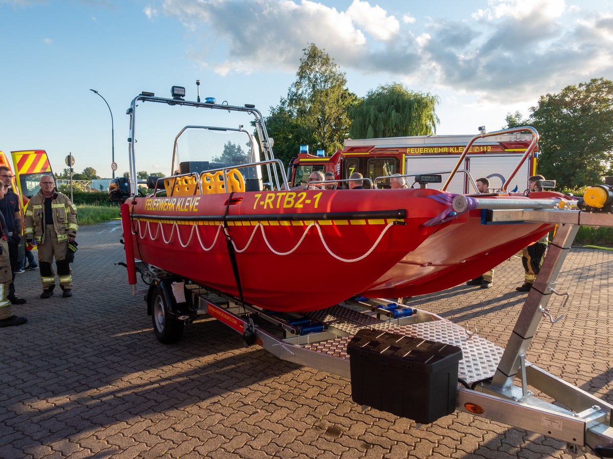 Am Mittwoch dieser Woche, dem 28. Mai, erhielt die Freiwillige Feuerwehr Kleve drei neue Rettungsboote für die Einheiten Wardhausen-Brienen, Düffelward und Griethausen. Vertreter der Einheiten erhielten am Tag der Abholung eine praktische Einweisung auf der Nordsee, um mit den neuen Booten bestens vertraut zu sein.