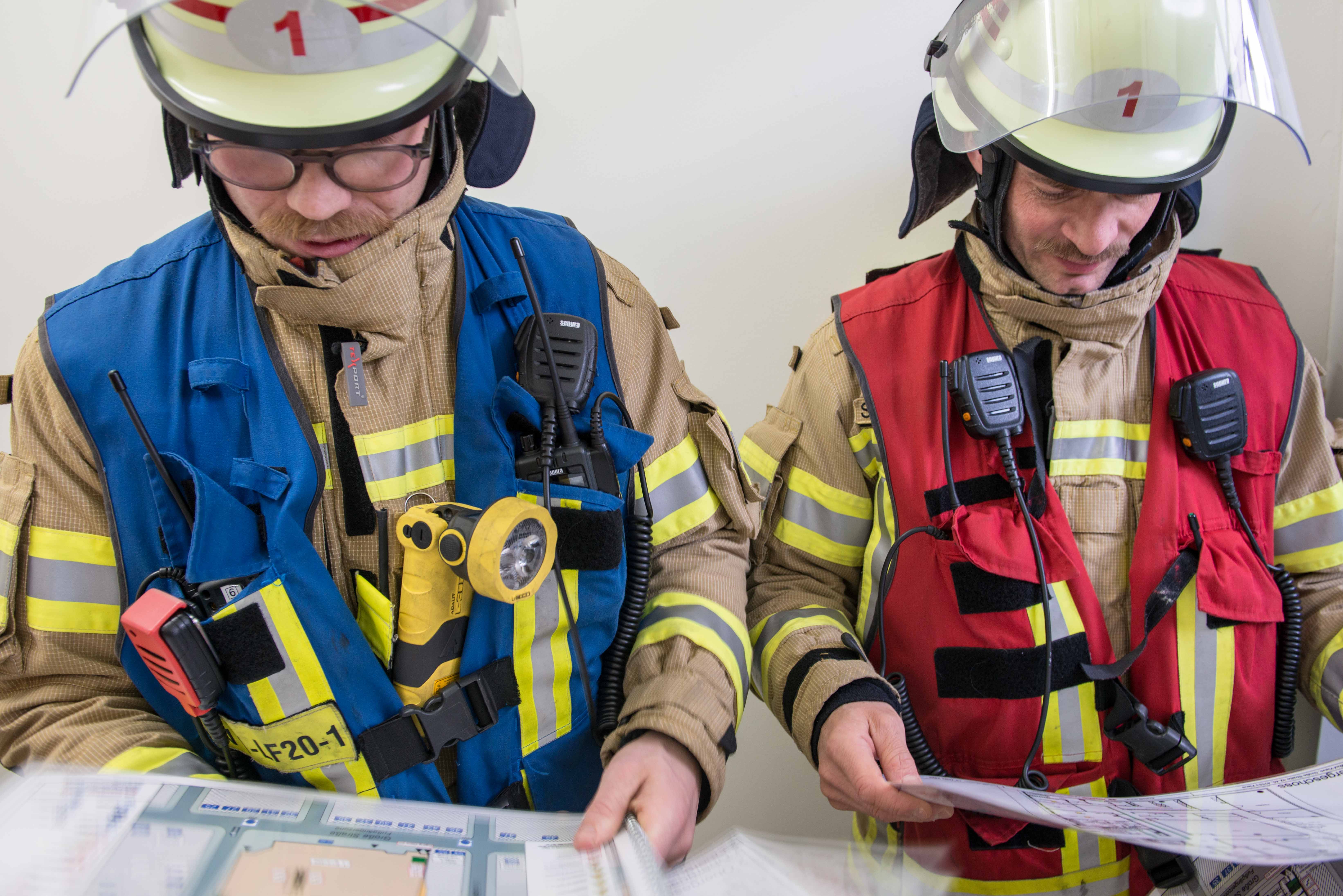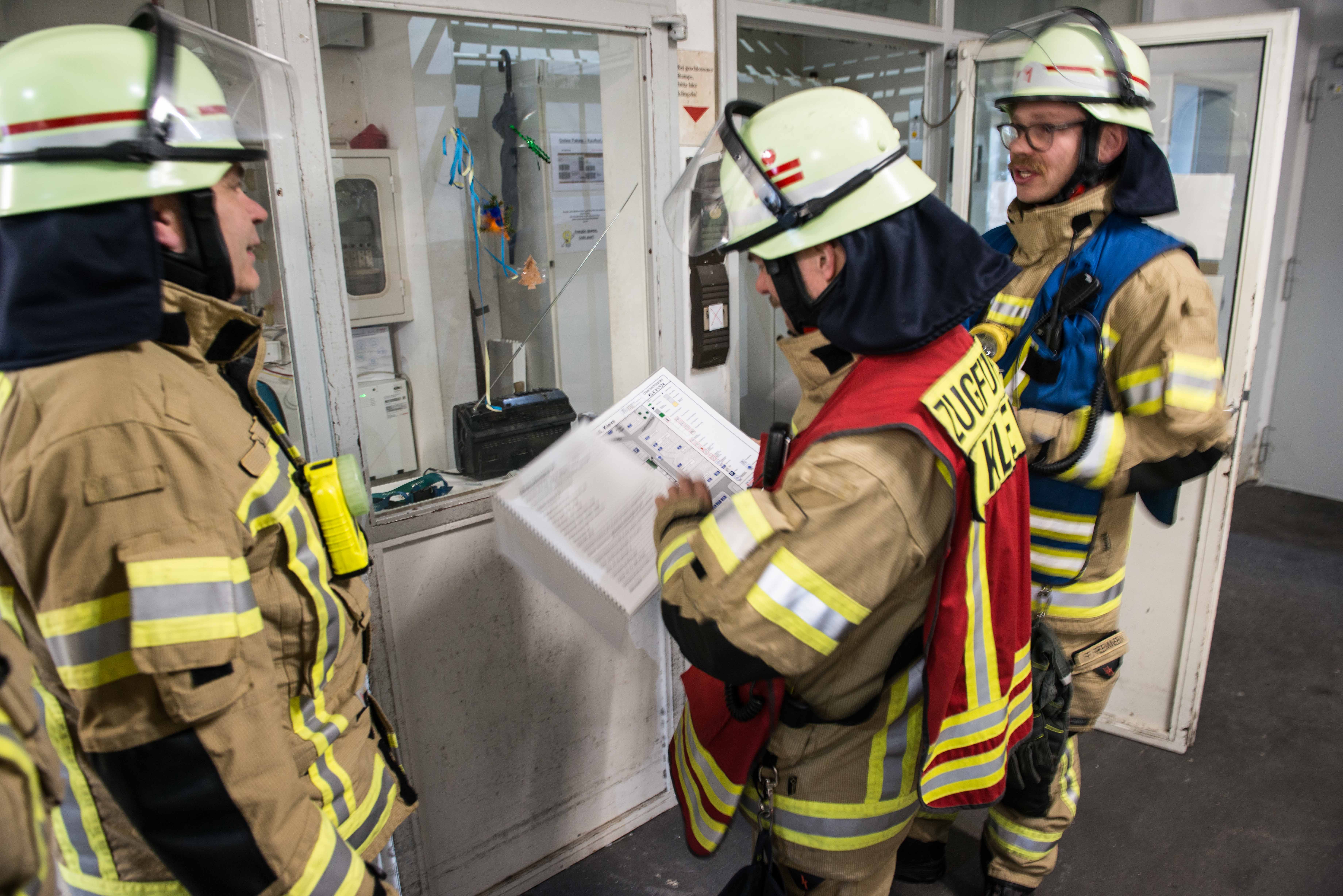 Im Anschluss erfolgte eine gemeinsame Begehung des Gebäudes. Dabei wurde unter anderem hervorgehoben, dass das Objekt flächendeckend mit Wandhydranten ausgestattet ist, sodass im Einsatzfall zunächst keine externe Löschwasserversorgung erforderlich ist. Gleichzeitig stellte die komplexe Gebäudestruktur mit mehreren Eingängen auf unterschiedlichen Ebenen eine besondere Herausforderung dar.