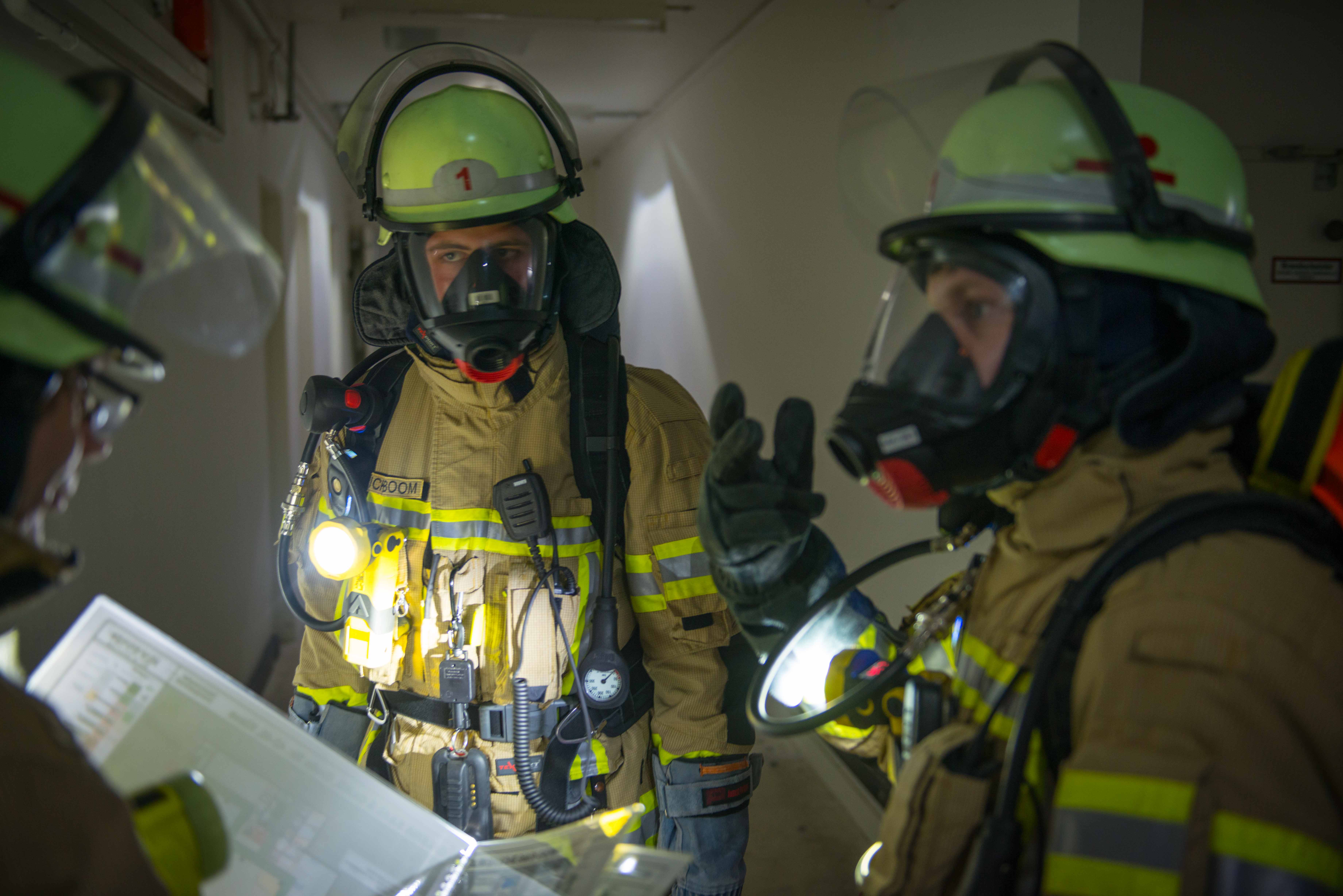Parallel dazu gingen zwei Angriffstrupps über getrennte Treppenräume zur Brandbekämpfung ins Gebäude vor. Durch dieses Vorgehen konnte ein gezielter Löschangriff von zwei Seiten sichergestellt werden. Im weiteren Verlauf wurde gemeldet, dass sich noch weitere Personen im Gebäude befinden. Diese konnten im Zuge der Menschenrettung zügig aufgefunden und aus dem Gebäude gebracht werden. Kurz darauf konnte von beiden Angriffstrupps auch "Feuer aus" gemeldet werden.