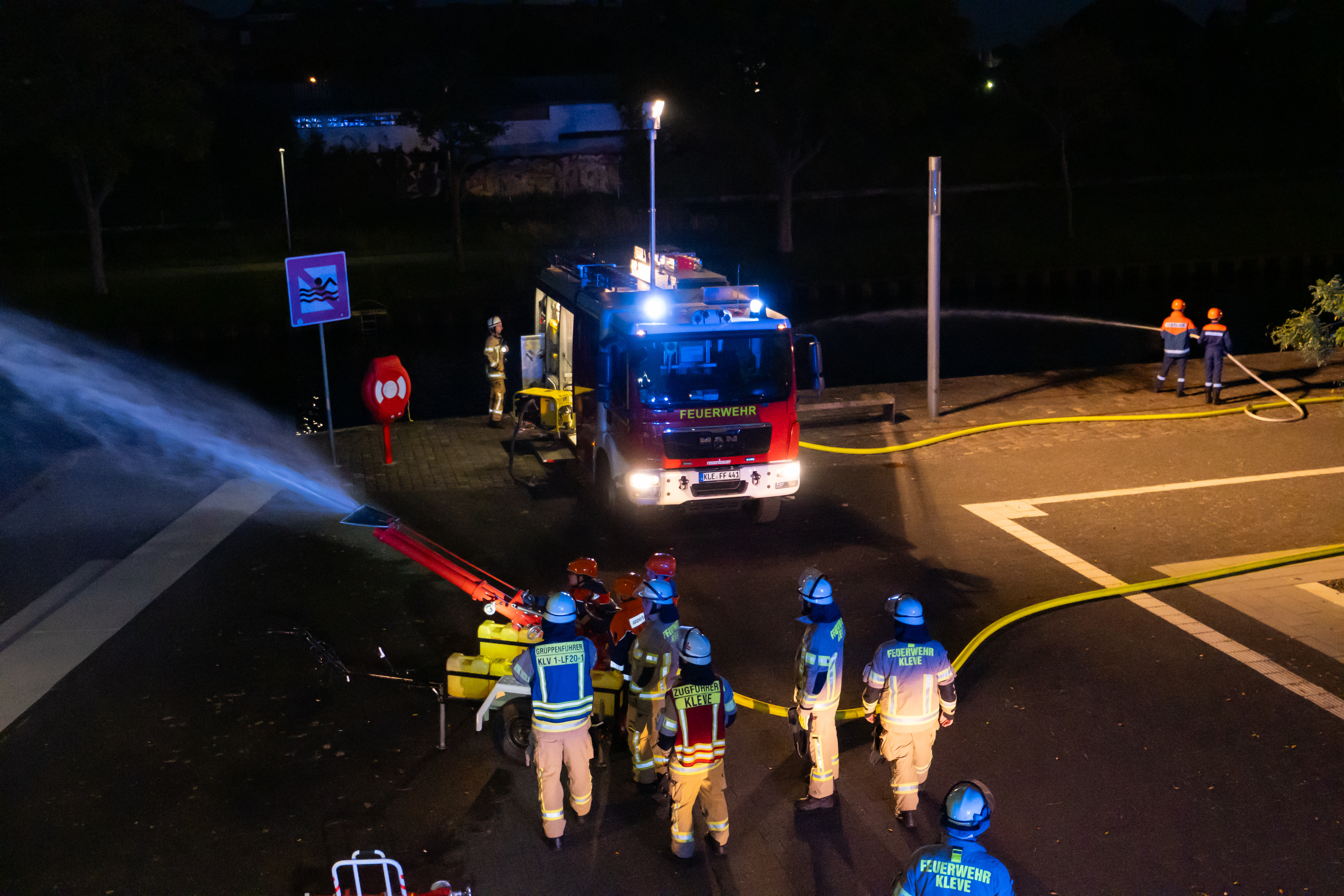 Am Freitagabend, dem 19. September, übte der Löschzug Kleve gemeinsam mit der Jugendfeuerwehr. Die Jugendlichen trainierten gemeinsam mit den aktiven Kräften den Einsatz von Wasser- und Schaumrohren und erlebten dabei Teamarbeit und Kameradschaft hautnah.