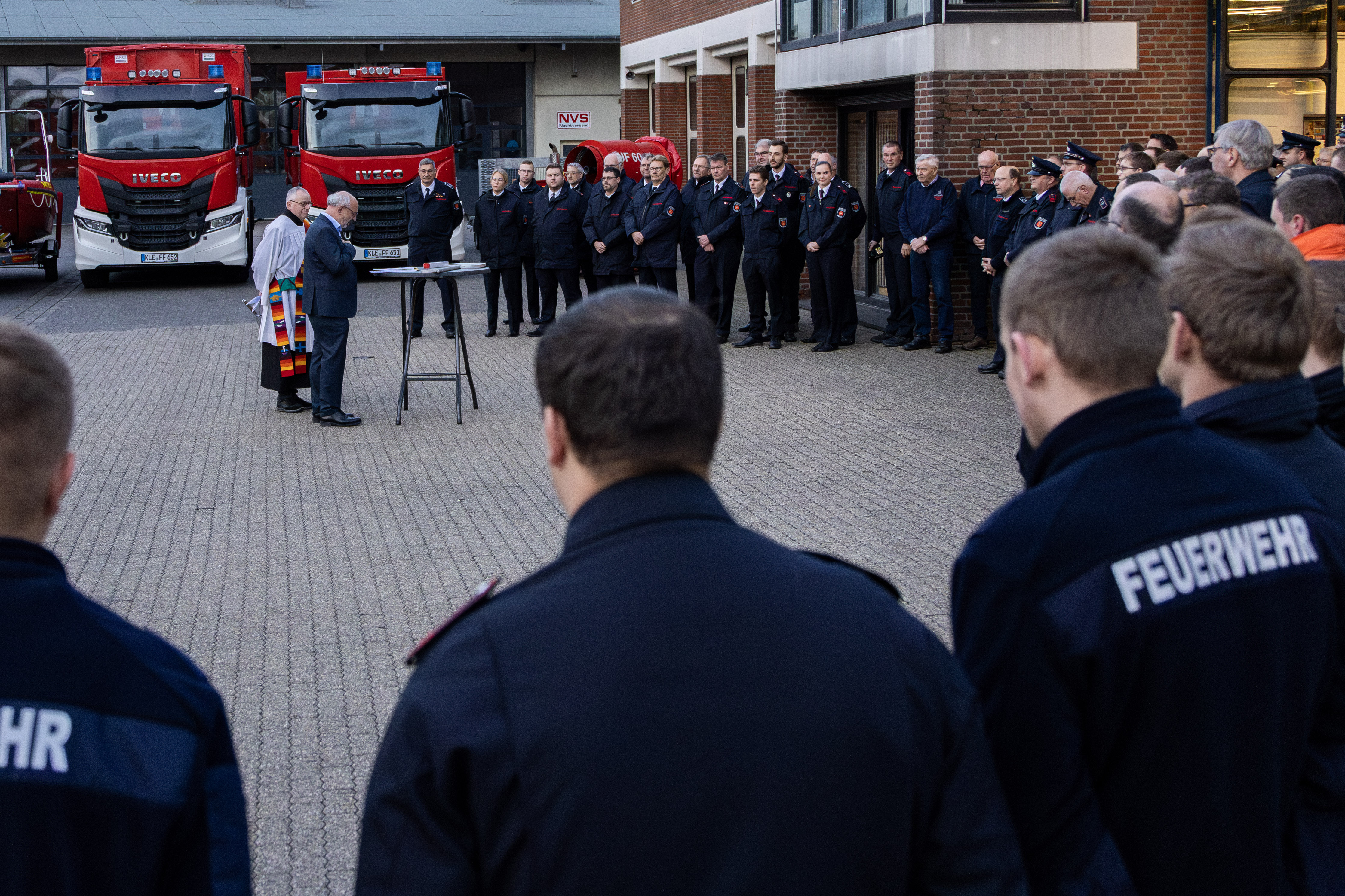 Am 30. Oktober 2025 hat die Feuerwehr Kleve an der Hauptwache in der Brabanterstraße neue Fahrzeuge und Ausrüstung feierlich in Dienst gestellt. Rund 100 Mitglieder der Feuerwehr nahmen an der internen Veranstaltung teil. Nach der Begrüßung durch den Leiter der Feuerwehr Ralf Benkel folgten Worte von Bürgermeister Gebing, die symbolische Schlüsselübergabe sowie die Einsegnung durch Diakon Michael Rübo. Im Anschluss blieb Zeit für Austausch bei einem kleinen Imbiss, bevor die Fahrzeuge an ihre Standorte im Stadtgebiet verlegt wurden.