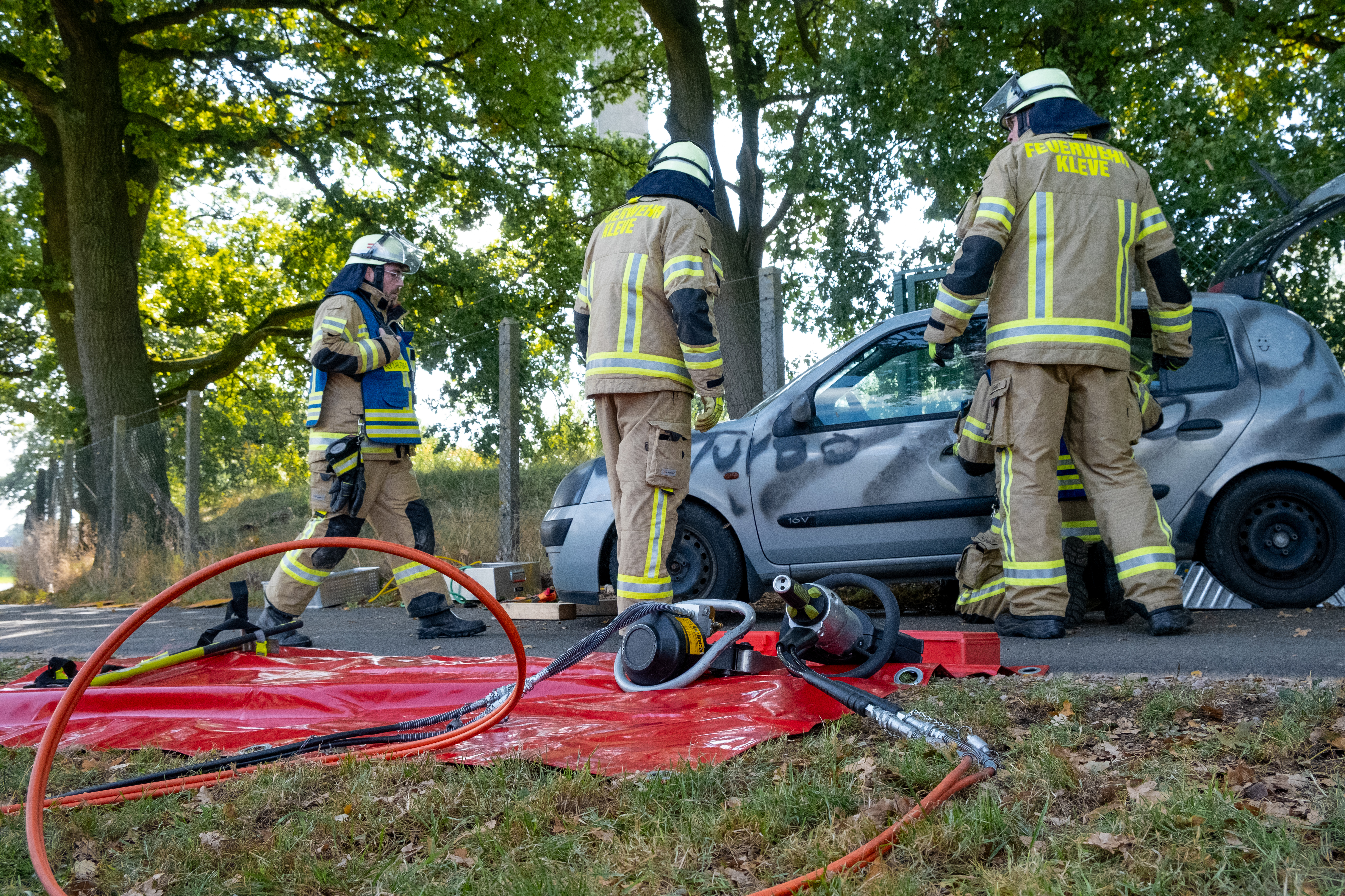 Nach etwa drei Stunden war das Szenario beendet. Beteiligt waren seitens der Klever Feuerwehr der Löschzug Süd (Materborn/Reichswalde), der Löschzug Kleve sowie der Einsatzleitwagen aus Wardhausen-Brienen. Hinzu kamen eine Einsatzeinheit des DRK, eine Gruppe des Malteser Hilfsdienstes und der Rettungsdienst des Kreises Kleve. So kamen etwa 70 Einsatzkräfte und knapp 30 Darsteller zusammen. Zum Abschluss trafen sich alle Beteiligten am Feuerwehrhaus Reichswalde zum Austausch – bei Würstchen und Getränken.