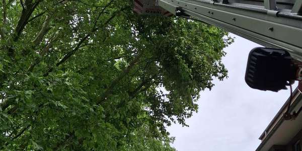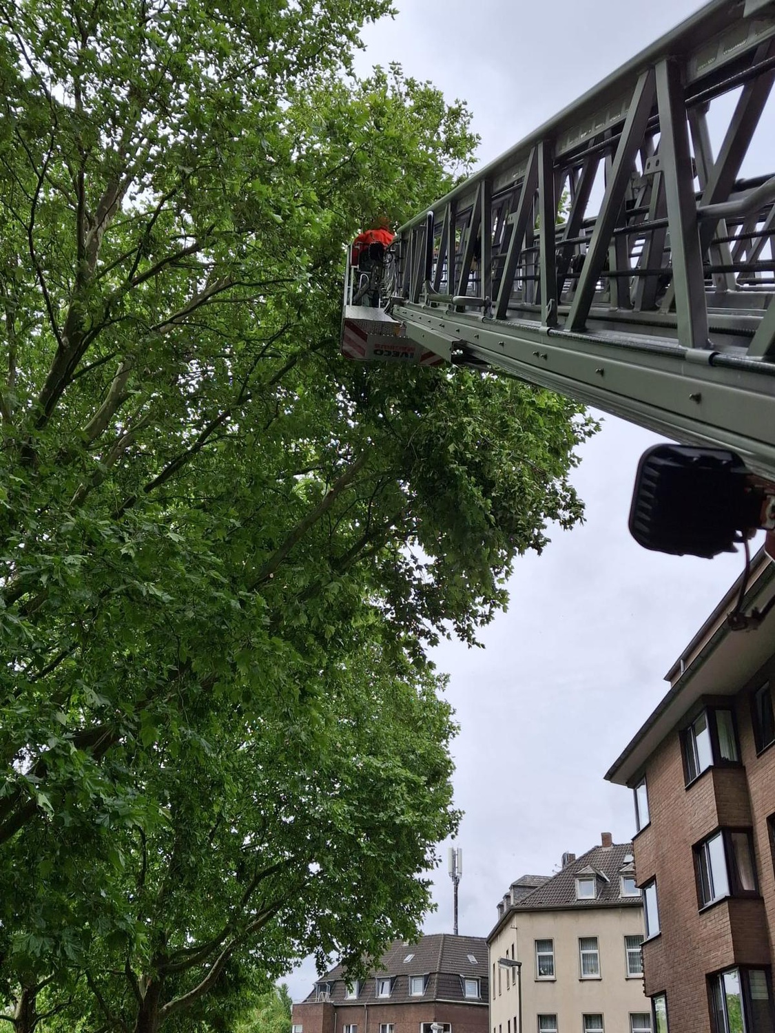 Die Kellener Drehleiter wurde im Rahmen des nächtlichen Unwetters zur überörtlichen Hilfe zur Bereitschaft nach Krefeld angefordert.