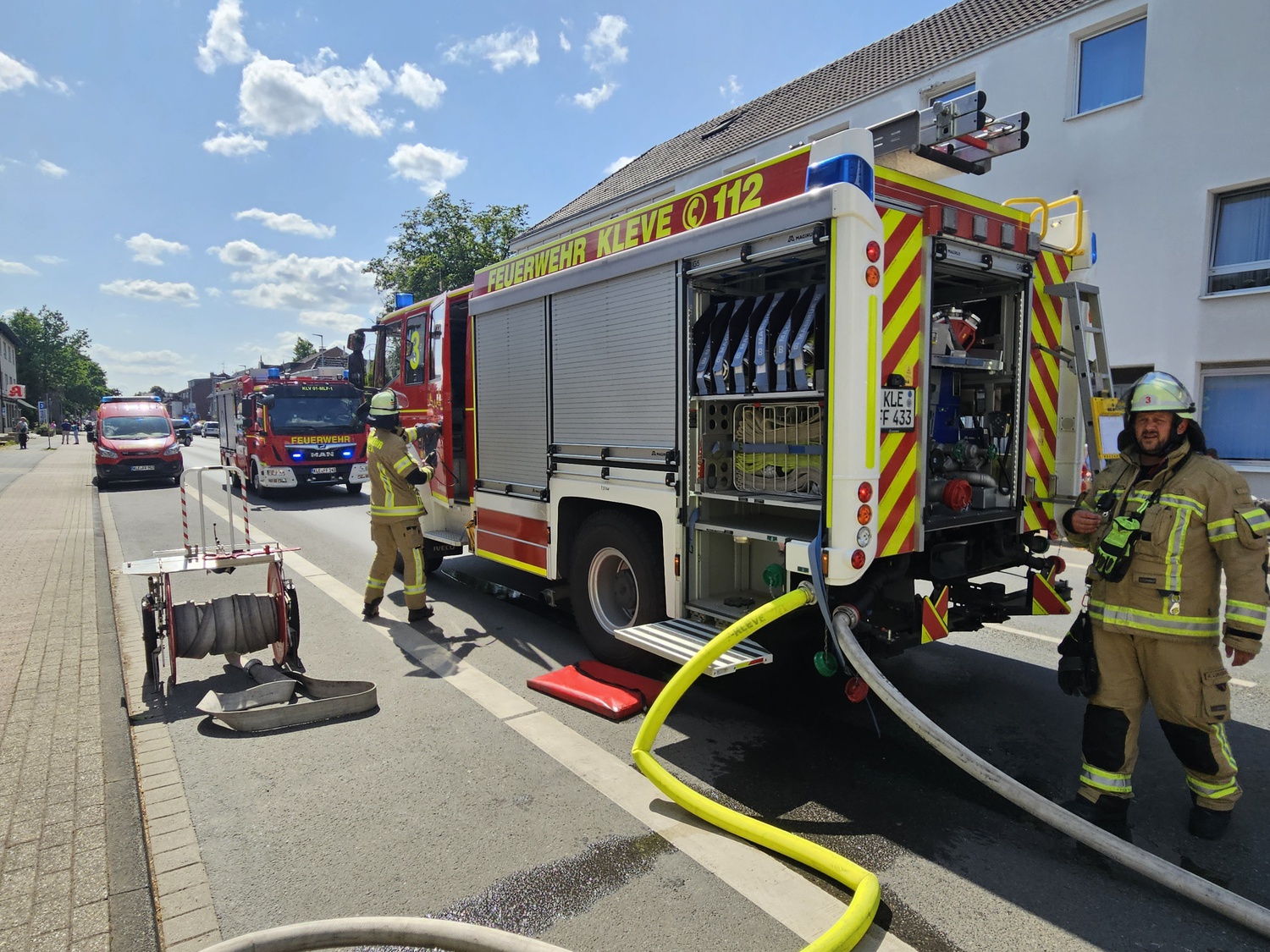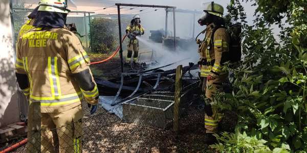 Am Montag den 23.06.2025 gegen 15:48 Uhr wurde der Löschzug Kellen, sowie die städtischen Bediensteten zu einem Kleingebäudebrand auf der Emmericher Straße alarmiert.