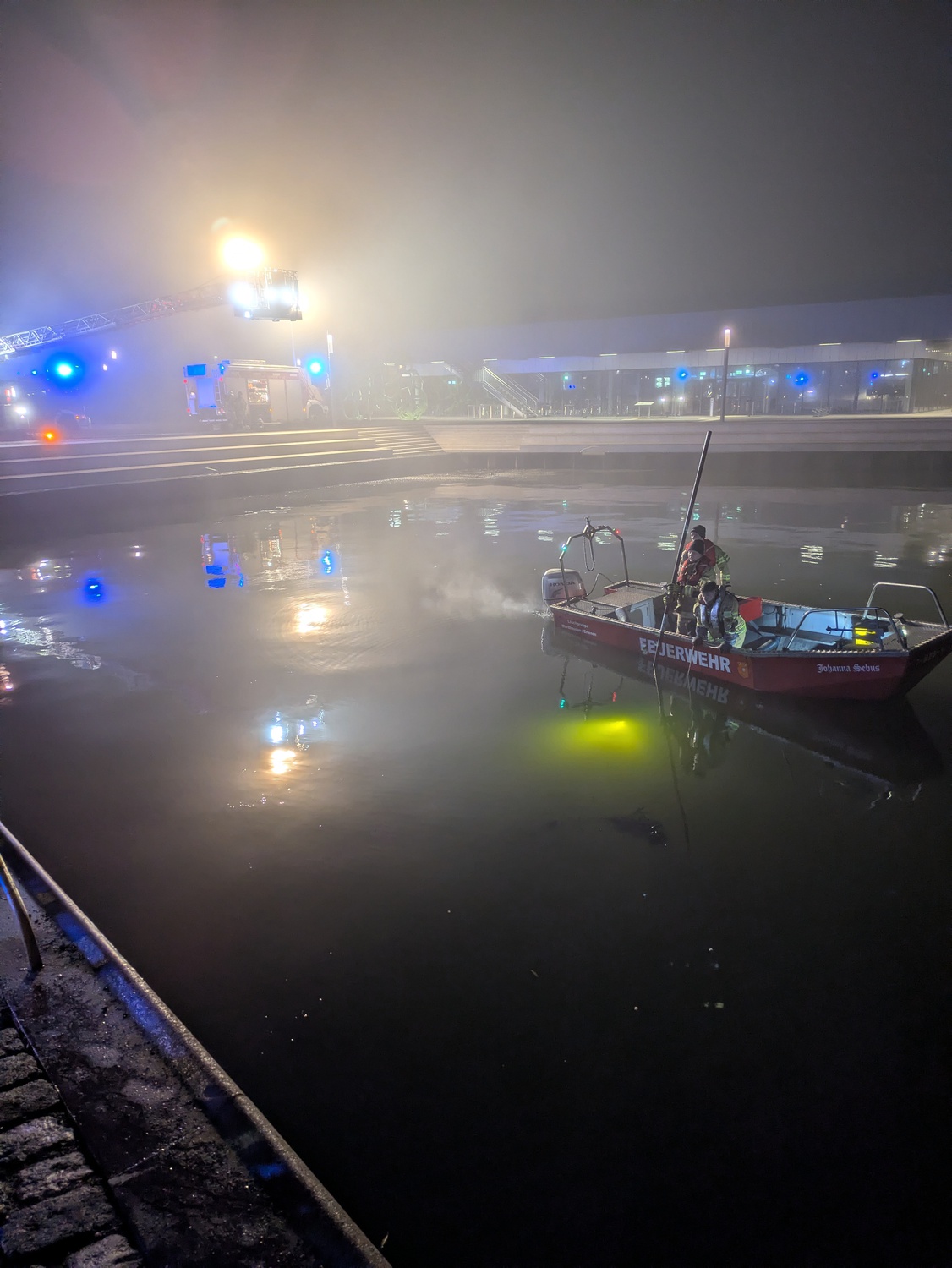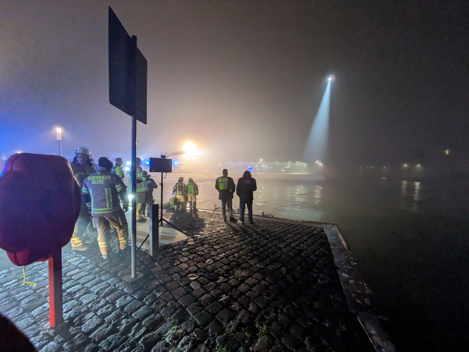 In der Nacht zu Sonntag (14. Dezember 2025) wurde die Feuerwehr Kleve gegen 0:06 Uhr zum alten Hafenbecken am Spoykanal an der Hochschule alarmiert. Dort waren ein Fahrrad sowie weitere Gegenstände unmittelbar an der Kante des Hafenbeckens aufgefunden worden, die darauf hindeuteten, dass eine Person ins Wasser gefallen sein könnte.