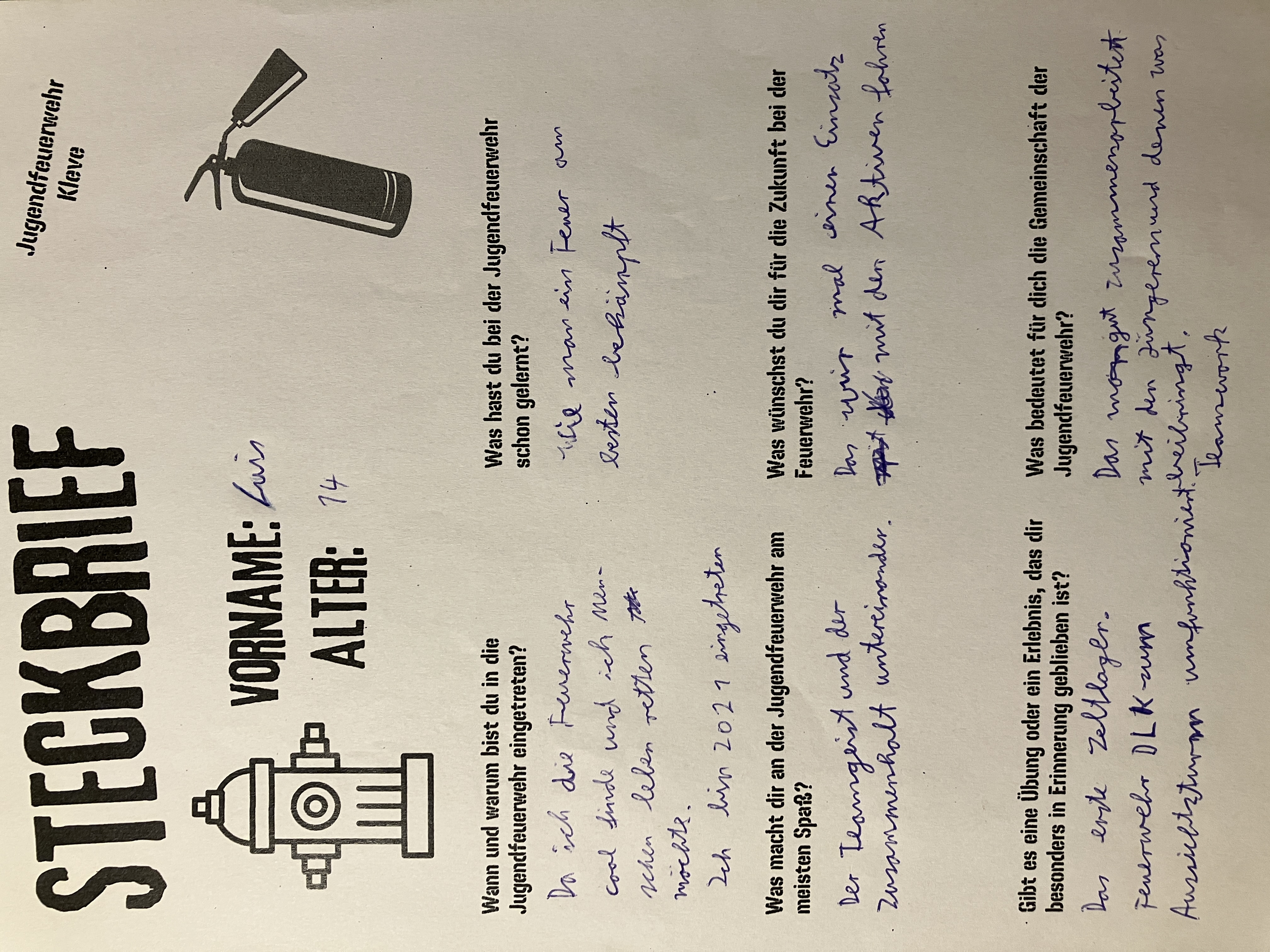 „Ich bin in die Jugendfeuerwehr eingetreten, weil ich schon immer neugierig auf die Arbeit der Feuerwehr war und helfen wollte, Menschen in Not zu unterstützen. Ich denke, es ist eine tolle Möglichkeit, etwas Gutes zu tun und gleichzeitig neue Fähigkeiten zu erlernen.“